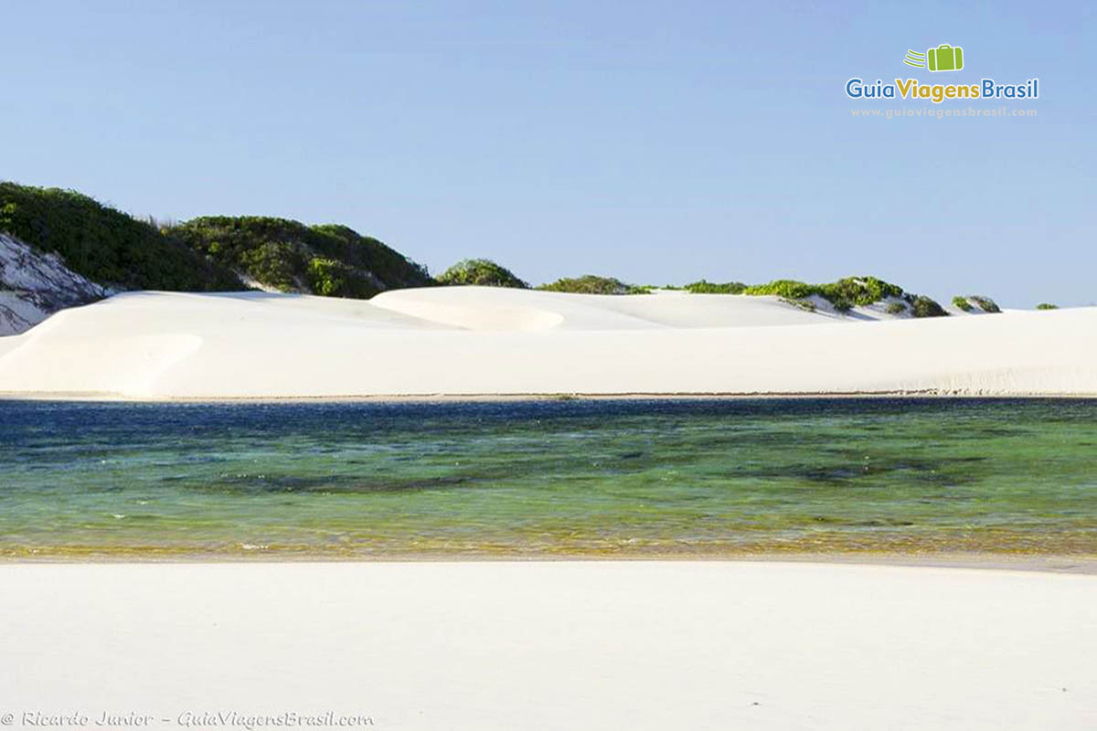 Continuando o passeio, você pode aproveitar o mesmo transfer para chegar até a Lagoa Verde. Dependendo da época do ano, esse trajeto passará por alguns rios que cortam as dunas locais, formando um caminho único e muito bonito. Já no período de seca você verá mais as dunas e pequenas aglomerações de água. Não menos bonitas, mas não tão imponentes.