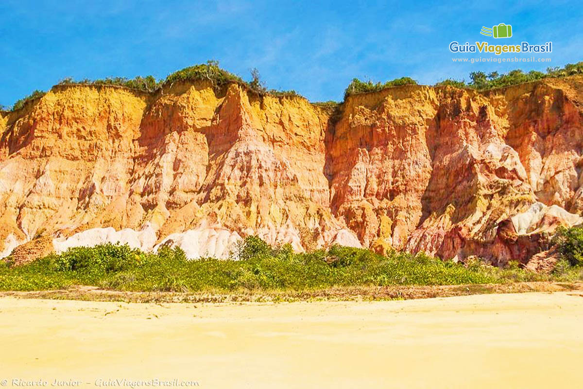 Veja fotos da linda Praia Lagoa Azul, em Arraial D`Ajuda, na Bahia. O pequeno trecho de praia entre Taípe e Pitinga é a Praia da Lagoa Azul, a 6 km do centro da vila de Arraial. Para chegar lá é preciso caminhar 20 minutos de Taípe ou 25 minutos de Pitinga. A Praia Lagoa Azul ganhou este nome devido a uma lagoa que existia no centro da praia. Hoje ela não existe mais, entretanto, na época de chuva forma um poço de lama rica em silicato de alumínio, uma argila com características terapêuticas, que atrai visitantes em busca de melhorar a pele e as crianças por pura diversão. Lagoa Azul tem uma larga faixa de areia clara ideal para caminhadas. O mar de águas azuis cristalinas é convidativo para um banho refrescante em meio a um cenário paradisíaco, com uma enorme falésia limitando a praia e mata com coqueiros emoldurando a orla.