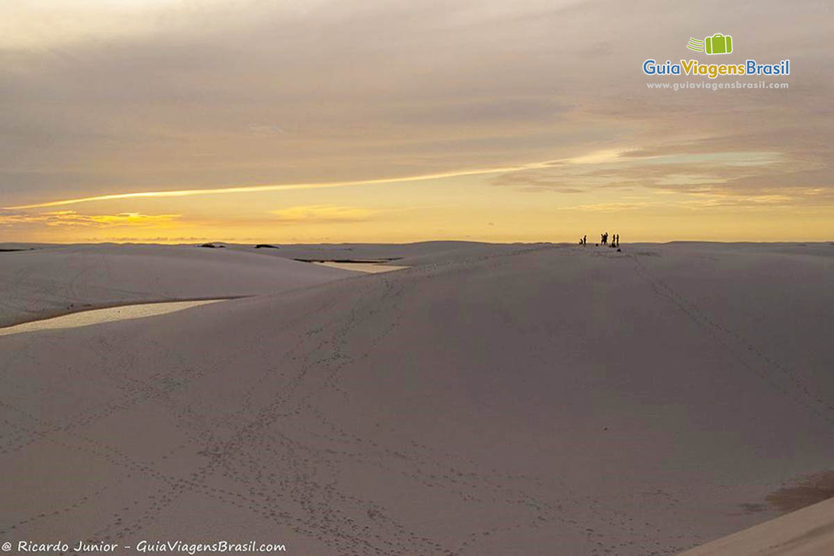 Veja as fotos da incrível Lagoa Azul, um dos cartão-postais dos Lençóis Maranhenses. Seguindo o ritmo dos passeios pelos Lençóis, cruza o Rio Preguiça e chacoalha no veículo 4x4 até chegar em um ponto sem orientação. Ali começa uma caminhada por entre dunas enormes, de areia fina e clara, que voam conforme o vento da região. O guia orienta o caminho, em passos fortes, pois precisa de certo esforço para quem não está acostumado a dunas (e altas). Mas, nada tira a vontade dos turistas em conhecer mais uma bela e encantadora lagoa, de águas cristalinas e mornas, um paraíso para refrescar do calor intenso. O cenário paradisíaco, do início ao fim do dia. Por falar nele, é ao entardecer que a paisagem emociona mais, com um inesquecível por do sol que reúne fotógrafos e muitos visitantes com suas câmeras prontas para cliques memoráveis.