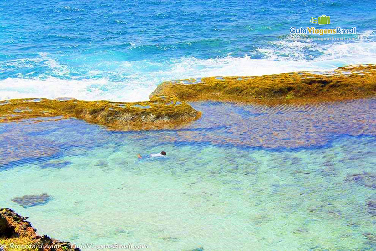 Veja fotos da Praia da Atalaia, em Fernando de Noronha, Pernambuco. Lindas e gigantescas formações de corais, além de piscinas naturais que enchem os olhos de cores inacreditáveis e água sempre cristalina e morna. A Praia da Atalaia tem tudo que se espera de uma ilha deserta. As esculturas nas rochas vulcânicas, que mostram a origem da ilha, foram lentamente talhadas pelo tempo, preparando o ambiente para o turista que encontra um cenário de tirar o fôlego. Apenas 30 pessoas por dia podem acessar a Praia da Atalaia, por exigência do Ibama para preservação do local, pois é berço e habitat natural de centenas de espécies nativas, algumas ameaçadas de extinção. Os agraciados com o passeio podem nadar e mergulhar entre os arrecifes e as rochas, apreciando a riqueza da vida marinha local e tendo como cenário a vista do Morro do Frade. Quem visita a Praia da Atalaia guarda para sempre na memória este pedaço do paraíso na ilha de Fernando de Noronha.